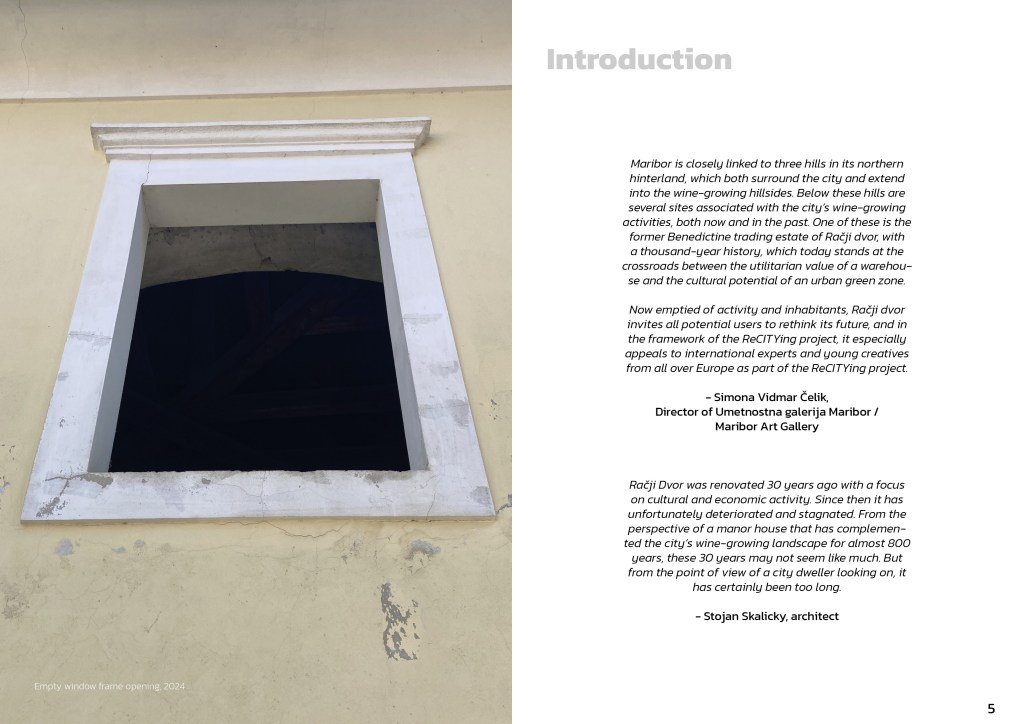 problems associated with housing heritage in Western Europe are emerging in Slovenia, especially when connected to high turnover in the former Yugoslavia. After the national independence of Slovenia, a process of privatisation of public housing stock was introduced. Current housing needs are particularly evident in cities such Maribor where the old mediaeval centre just partially compensate for thep. 4 / 27 sprawl condition of urban peripheries. Today there are 175.000 dwellings in Slovenia (equal to 37.3%) offered for sale/rental or without specific assignment. In Maribor there are 12,500 vacant dwellings to be reassigned or transformed. Against this, Gosposka street, the main pedestrian street in Maribor suffers from scattered vacancy both in the upper housing structure as well as in the ground shop level, due to relocations of stores in peripheral shopping malls. Creative reinvention, recycling and innovation through arts could represent an immediate response to raise social awareness on these trends and promote policy supply for temporary reuse strategy and micro-design actions.